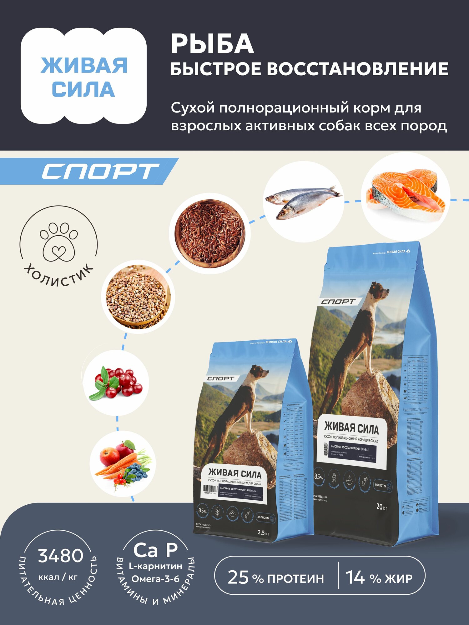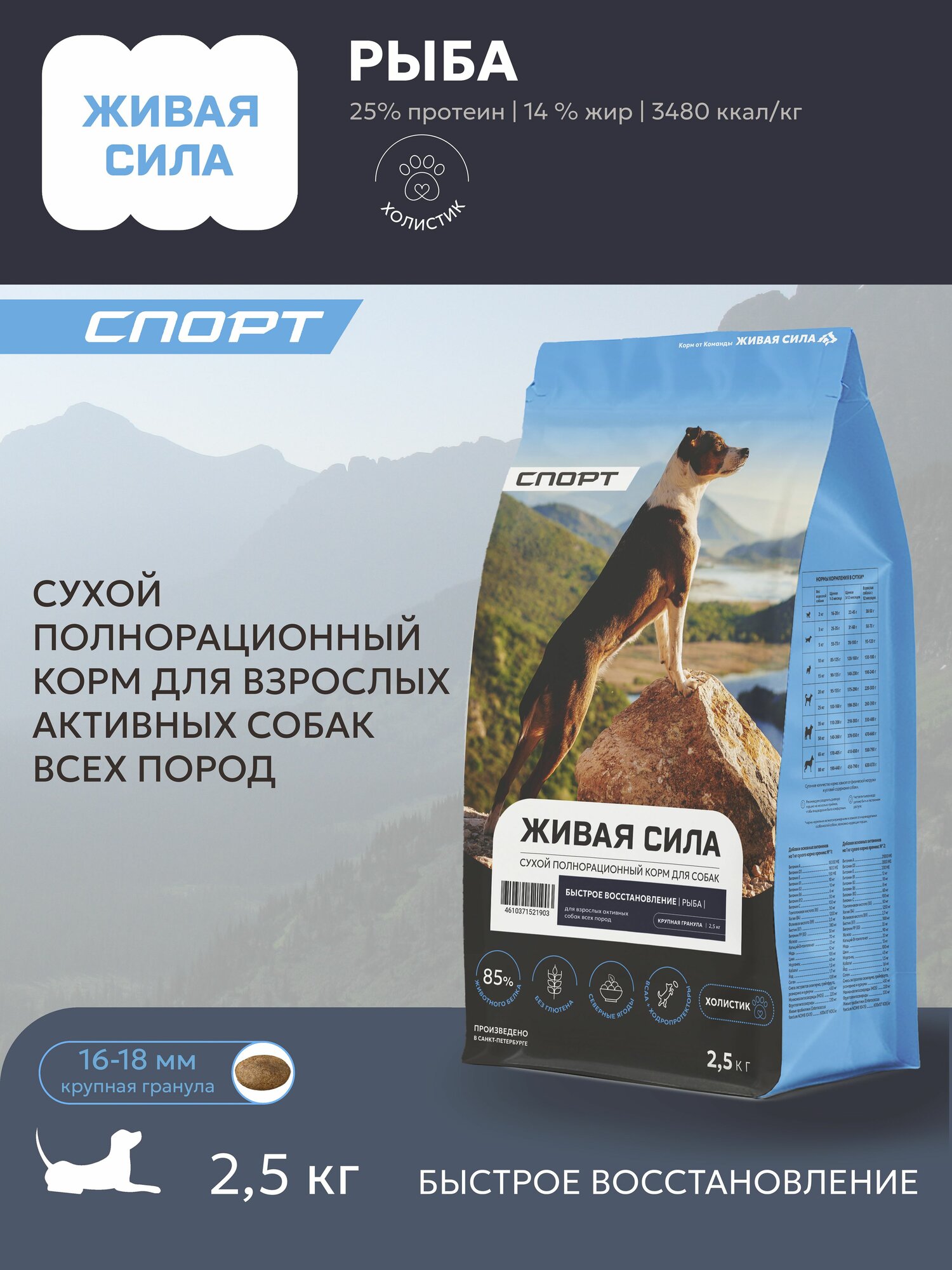 Купить Живая Сила Спорт сухой полнорационный корм с рыбой для взрослых активных собак крупных и средних пород, крупная гранула, 2,5кг с доставкой по всей России. Живая Сила Спорт сухой полнорационный корм с рыбой для взрослых активных собак крупных и средних пород, крупная гранула, 2,5кг: сравнение цен, характеристики, фото, актуальное наличие и цены.