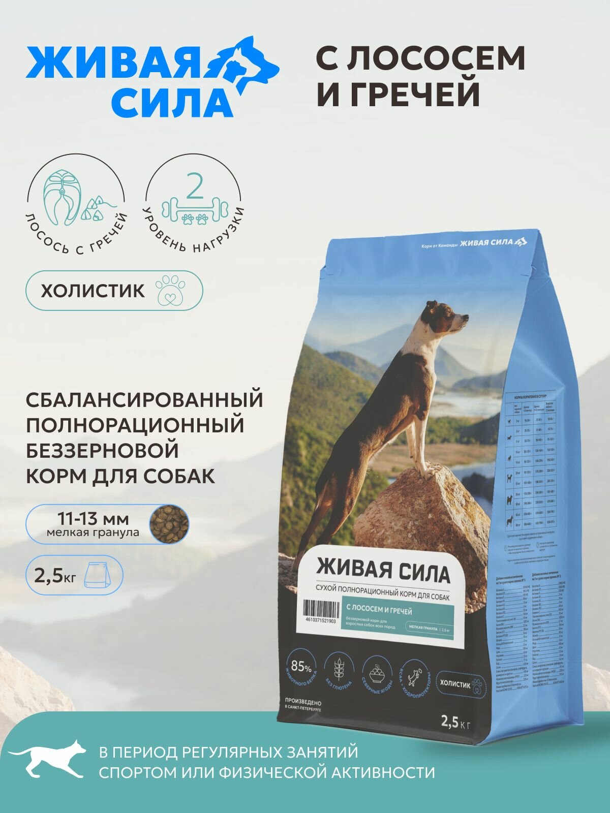 Купить Живая Сила сухой полнорационный беззерновой корм с лососем и гречей для взрослых собак всех пород, мелкая гранула, 2,5кг с доставкой по всей России. Живая Сила сухой полнорационный беззерновой корм с лососем и гречей для взрослых собак всех пород, мелкая гранула, 2,5кг: сравнение цен, характеристики, фото, актуальное наличие и цены.