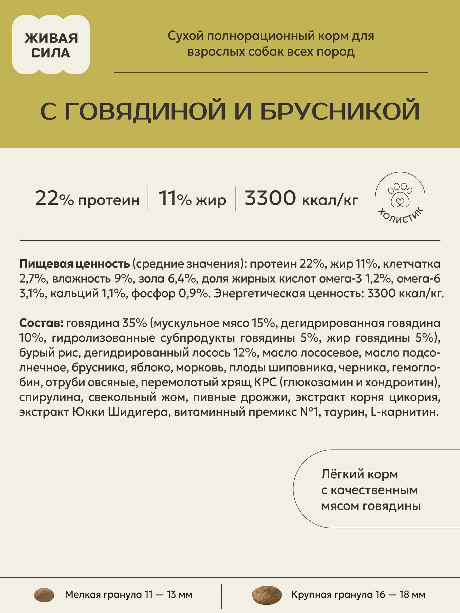 Купить Живая Сила сухой полнорационный корм с говядиной и брусникой для взрослых собак крупных и средних пород, крупная гранула 2,5кг с доставкой по всей России. Живая Сила сухой полнорационный корм с говядиной и брусникой для взрослых собак крупных и средних пород, крупная гранула 2,5кг: сравнение цен, характеристики, фото, актуальное наличие и цены.