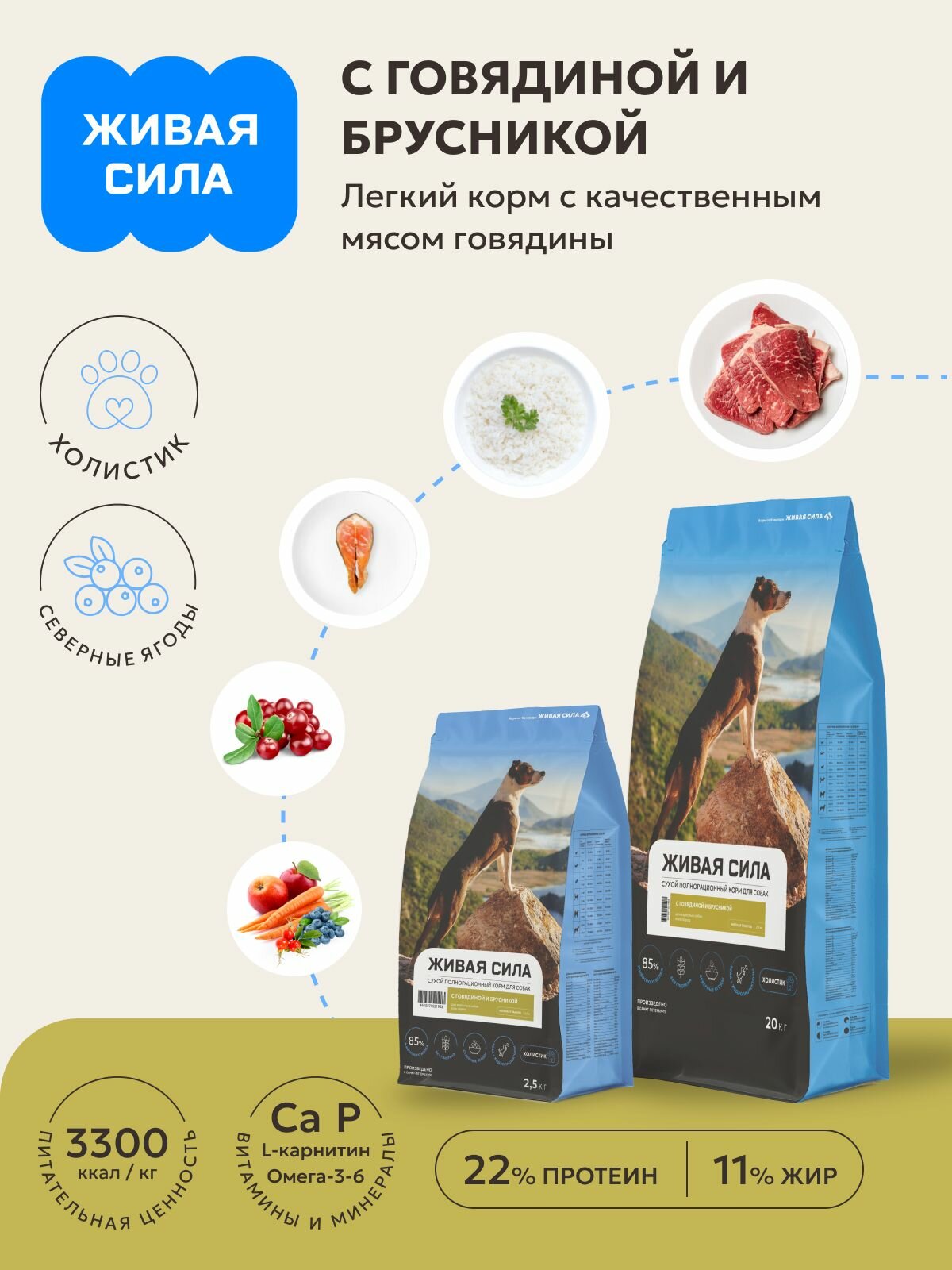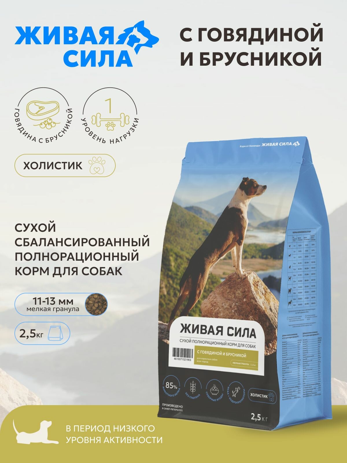 Купить Живая Сила сухой полнорационный корм с говядиной и брусникой для взрослых собак всех пород, мелкая гранула 2,5кг с доставкой по всей России. Живая Сила сухой полнорационный корм с говядиной и брусникой для взрослых собак всех пород, мелкая гранула 2,5кг: сравнение цен, характеристики, фото, актуальное наличие и цены.
