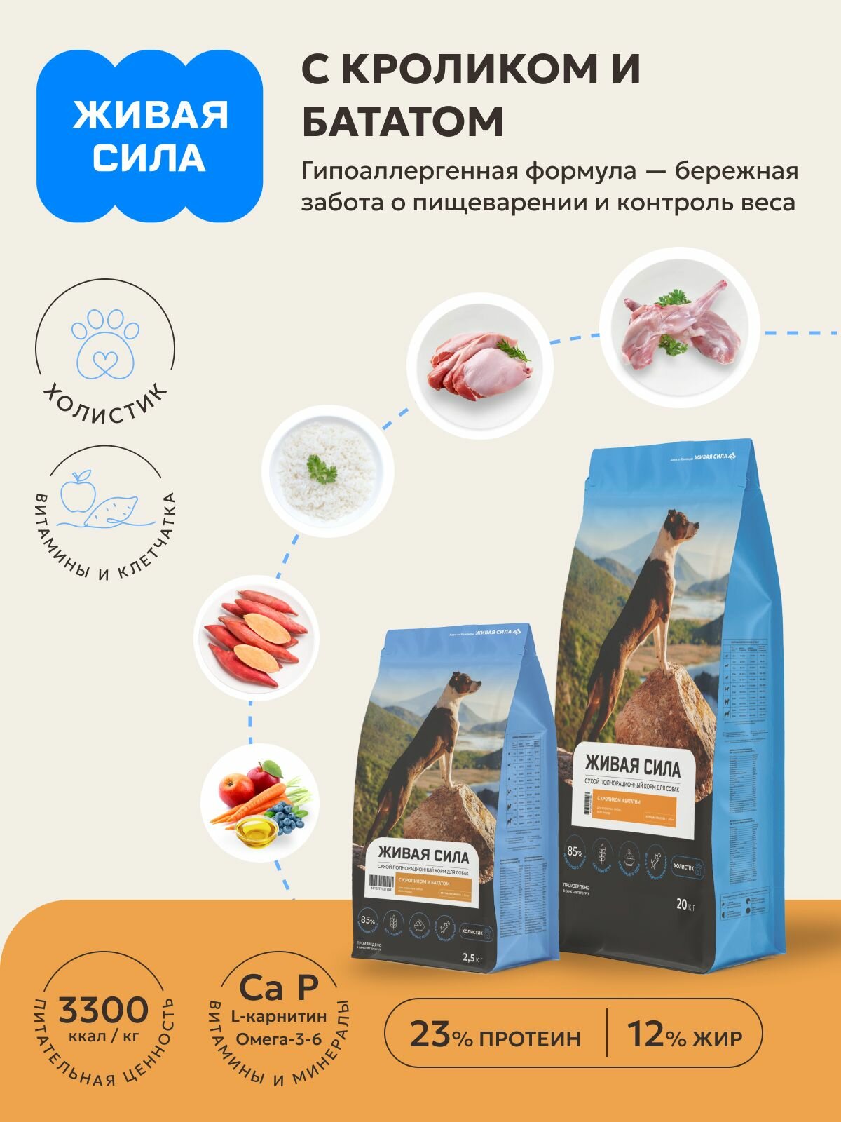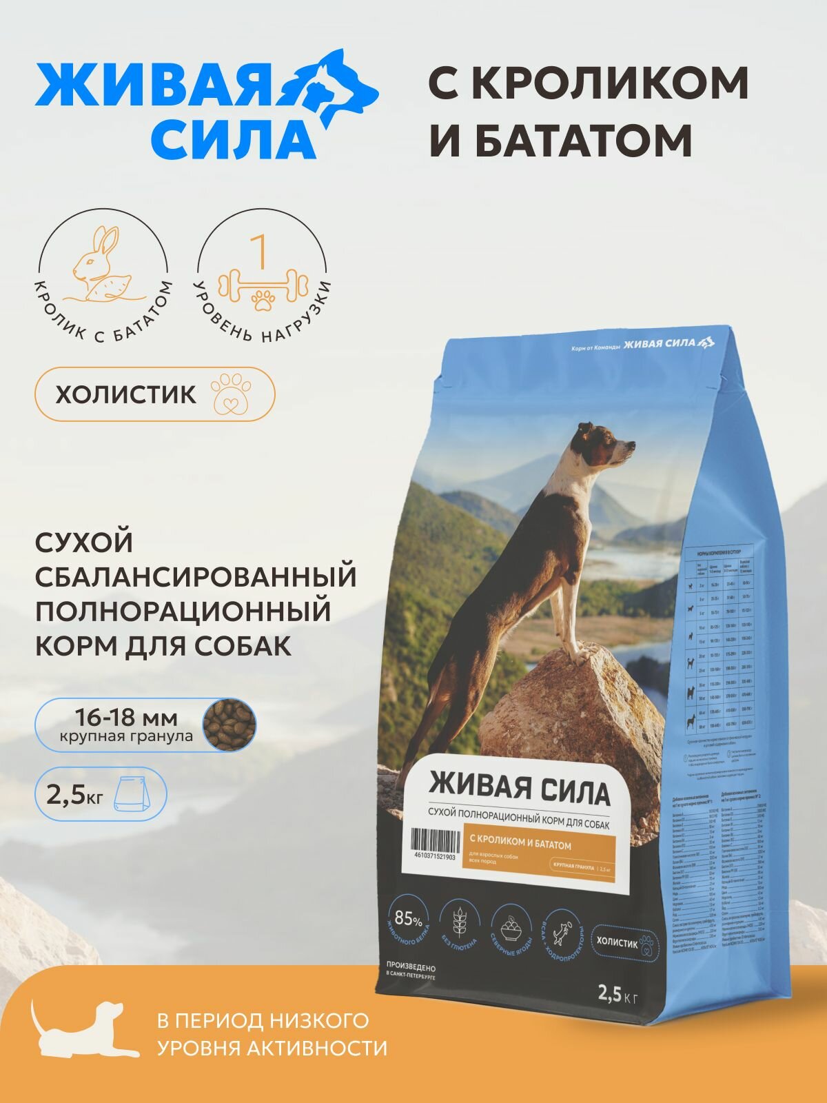 Купить Живая Сила сухой полнорационный корм с кроликом и бататом для взрослых собак крупных и средних пород, крупная гранула, 2,5кг с доставкой по всей России. Живая Сила сухой полнорационный корм с кроликом и бататом для взрослых собак крупных и средних пород, крупная гранула, 2,5кг: сравнение цен, характеристики, фото, актуальное наличие и цены.