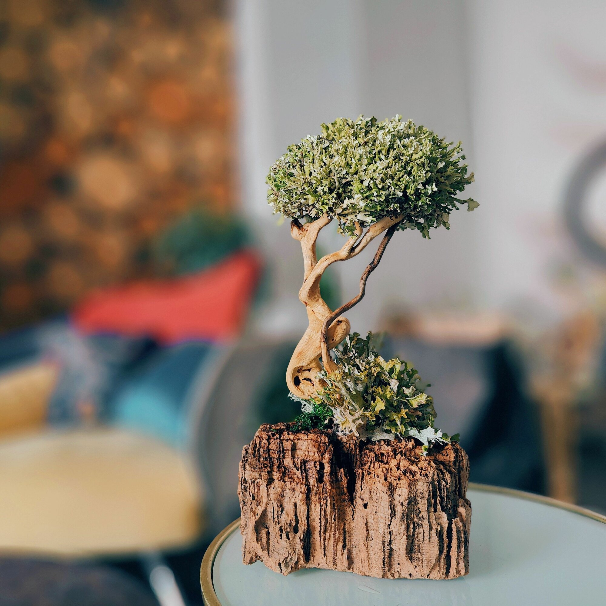 Этот бонсай из мха не только красив, но и полезен. Он активно очищает воздух и создает приятный микроклимат в комнате. Кроме того, дерево из цетрарии служит отличным решением для людей, которые не имеют времени или возможности ухаживать за живыми растениями, но хотят украсить свой дом цветами и растениями.