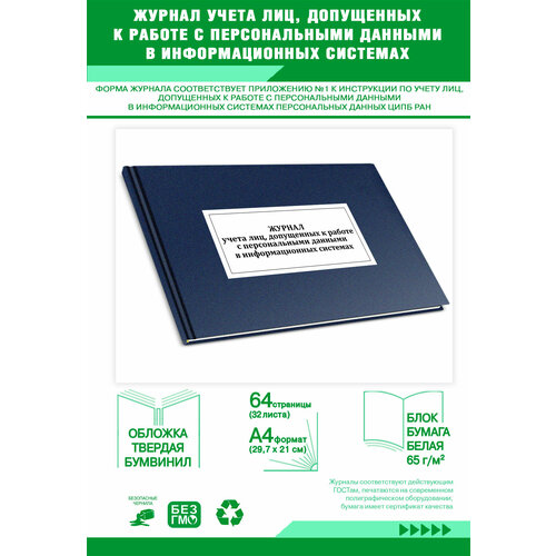 Купить Журнал учета лиц, допущенных к работе с персональными данными в информационных системах 64 страниц Твердый с доставкой по всей России. Журнал учета лиц, допущенных к работе с персональными данными в информационных системах 64 страниц Твердый: сравнение цен, характеристики, фото, актуальное наличие и цены.