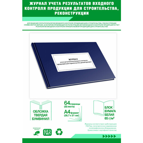 Купить Журнал учета результатов входного контроля продукции для строительства, реконструкции 64 страниц Твердый с доставкой по всей России. Журнал учета результатов входного контроля продукции для строительства, реконструкции 64 страниц Твердый: сравнение цен, характеристики, фото, актуальное наличие и цены.