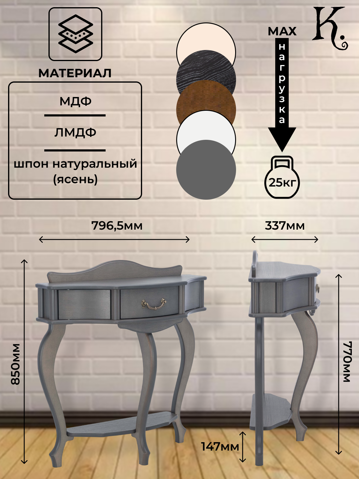 Журнальный консольный столик Джульетта, МДФ, с выдвижным ящиком, цвет серый ясень: сравнение цен, характеристики, фото, актуальное наличие и цены.