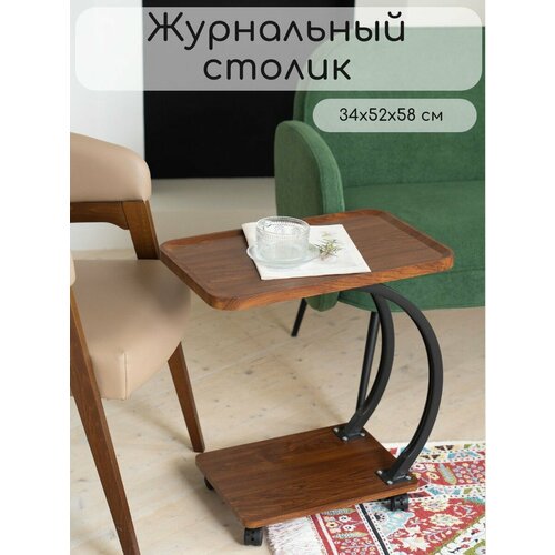 Маленький журнальный столик на колесиках в сдержанную эстетику лофта, коричневый цвет и эргономичность. Приставная модель в гостиную, спальню и детскую комнату. Монтируется за минуты. Имеет удобную столешницу. Может использоваться как прикроватный кофейный столик и тумба для ноутбука. Минималистичный дизайн сочетается с большинством интерьерных стилей. Прочная столешница вместит посуду для чаепития, туалетные аксессуары, косметику и книги. Поможет быстро организовать порядок в прихожей и на кухне. Найти местечко для конструкции несложно даже на ограниченной площади. Придиванный столик легко превращается в подставку для мелочей в офисе, дома и на даче. Например, в стойку для чая и кофе, мини-уголок для комнатных растений и канцелярских принадлежностей. Отличный книжный мини-столик в кабинет, за которым приятно читать, работать, заниматься мелким рукоделием. Мы сделали его максимально мобильным. Вес и габариты уменьшены до оптимальных значений. Устойчивый, позволяет передвигать мебель без последствий для напольных покрытий. Стильный сервировочный стол-тумба для завтрака на одного. Здесь хватит места не только для чайной чашки. Размер 52*34*58 см. Размер нижней полки 39,5*30*1,5 см, размер верхней столешницы 52*34*2,5 см. Материал: металл, ДСП.