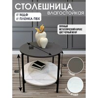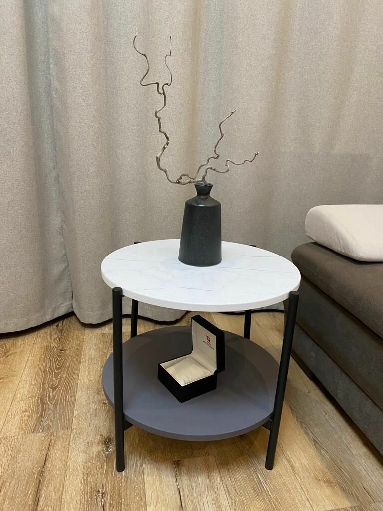 Журнальный стол круглый кофейный, прикроватный, придиванный с полкой "Лотос", 50х50х47