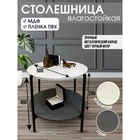 Журнальный стол круглый с полкой Лотос из МДФ в пленке ПВХ, 50х50х47