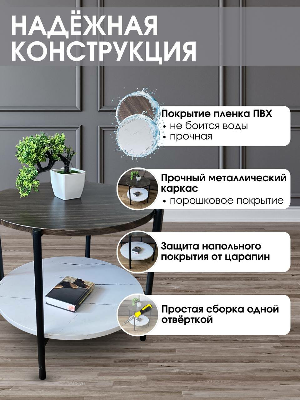 Журнальный стол круглый с полкой Лотос, текстура дерево, 50х50х47: сравнение цен, характеристики, фото, актуальное наличие и цены.