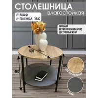 Журнальный стол круглый с полкой Лотос, текстура дерево, 50х50х47, пленка ПВХ