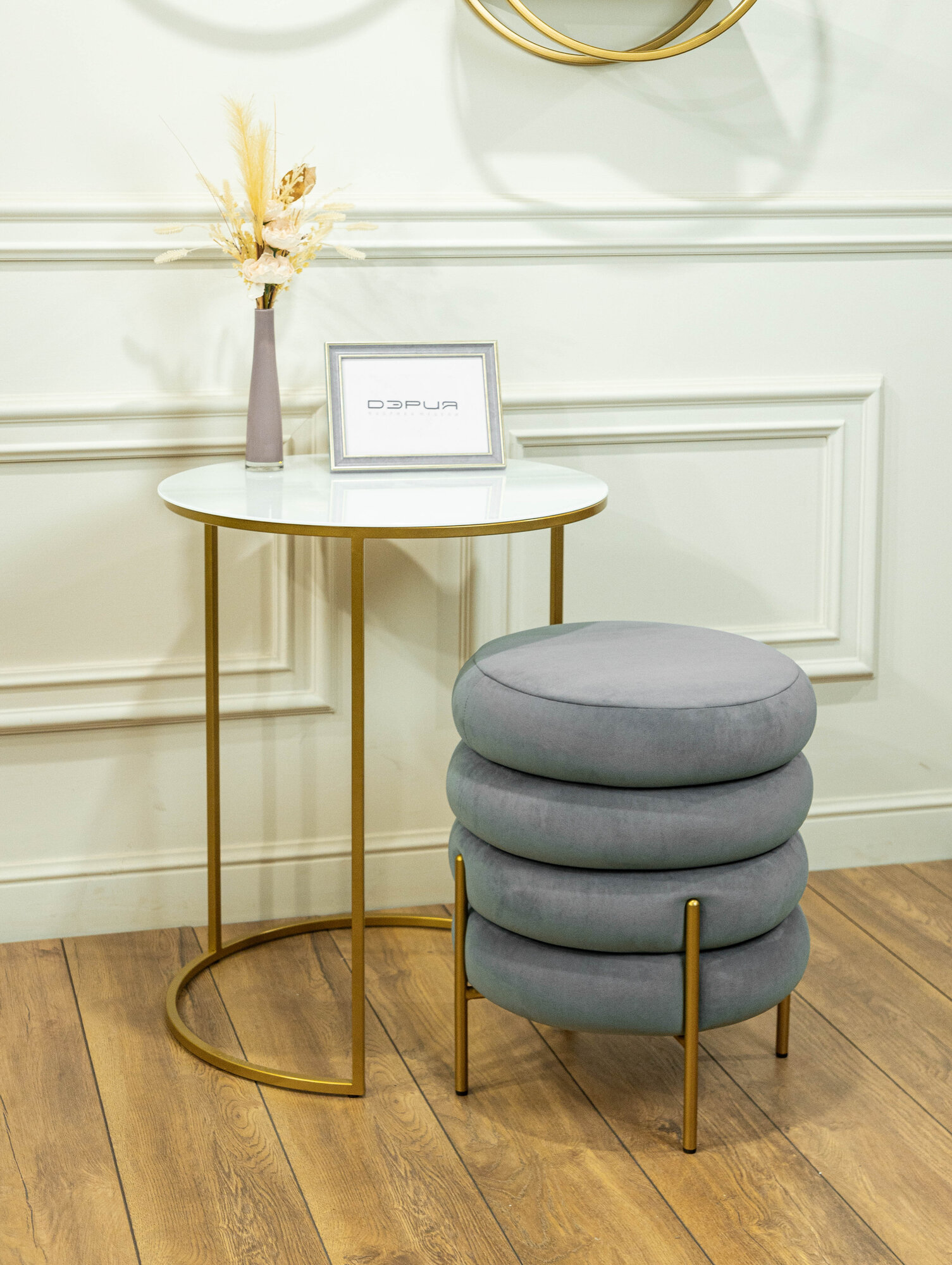 Журнальный стол круглый, с серым пуфом, металлический каркас, белая столешница: сравнение цен, характеристики, фото, актуальное наличие и цены.