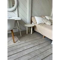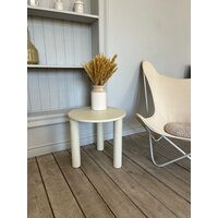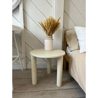 Стильный круглый журнальный столик на трех ножках в стиле джапанди станет прекрасным дополнением к вашему интерьеру. Его диаметр составляет 45 сантиметров, а высота - 41 сантиметр. Возможны два варианта сборки ножек прикроватного стола - ножки можно прикрутить ближе к краю столешницы и можно прикрутить ближе к центру. Все необходимые крепежные элементы уже предусмотрены.