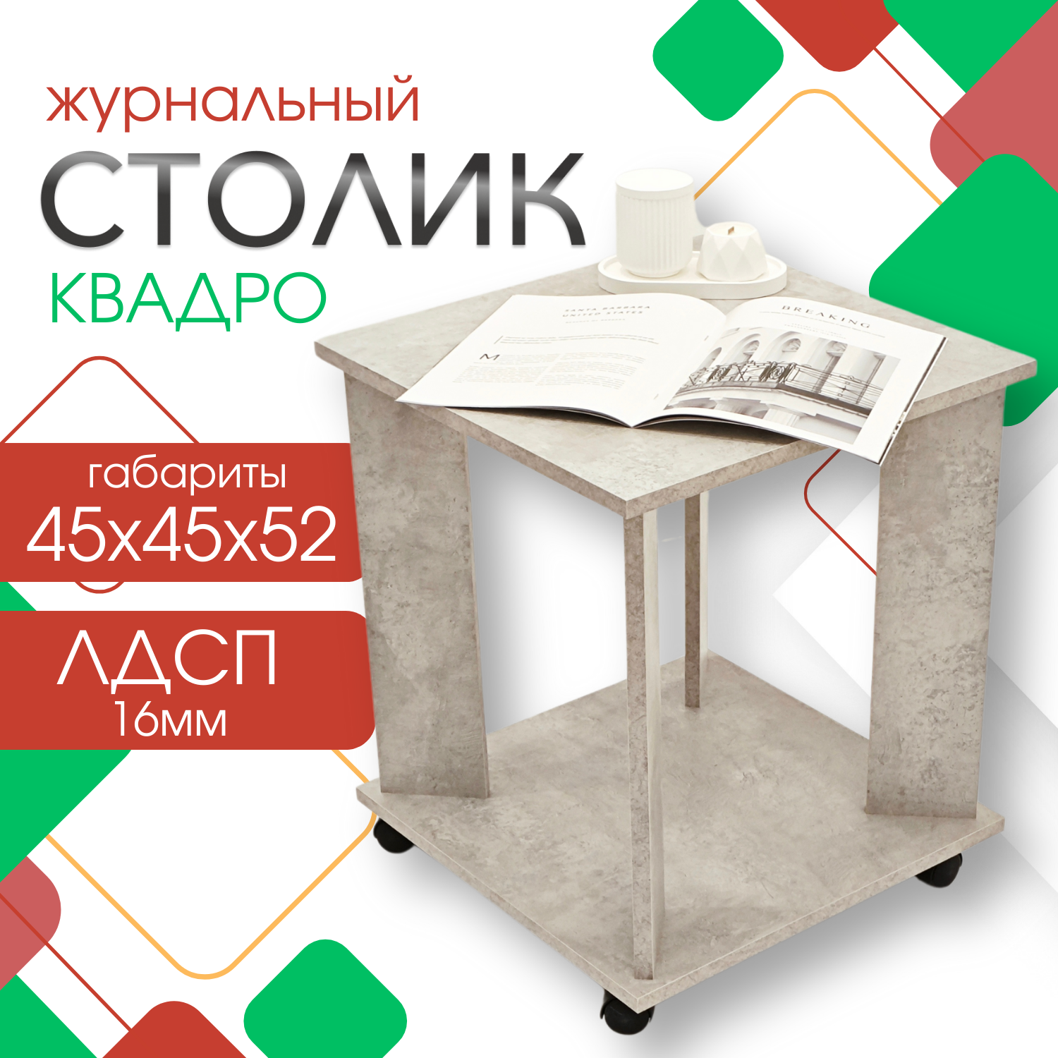 Журнальный стол «Квадро», Кресло Сибири, для дома, приставной, 45x45x52 см, Цемент светлый: сравнение цен, характеристики, фото, актуальное наличие и цены.