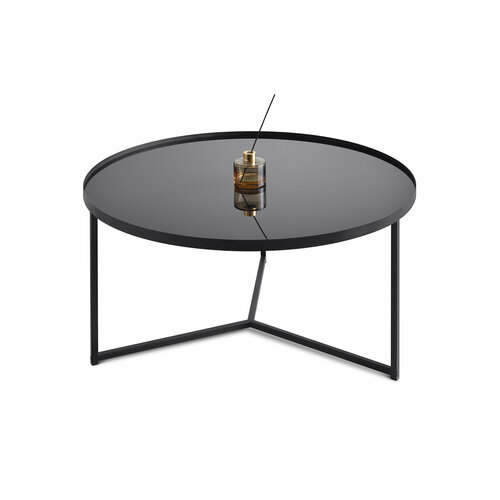 Круглый журнальный стол Ferrum MD 7602 на прочном металлическом каркасе, с высокими бортиками и столешницей из безопасного закаленного стекла от производителя MetalDesign.