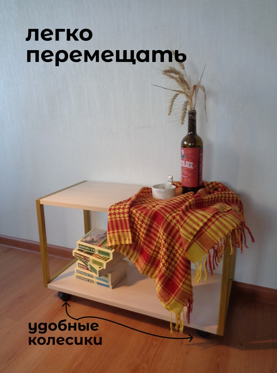 на колесиках, с полкой
