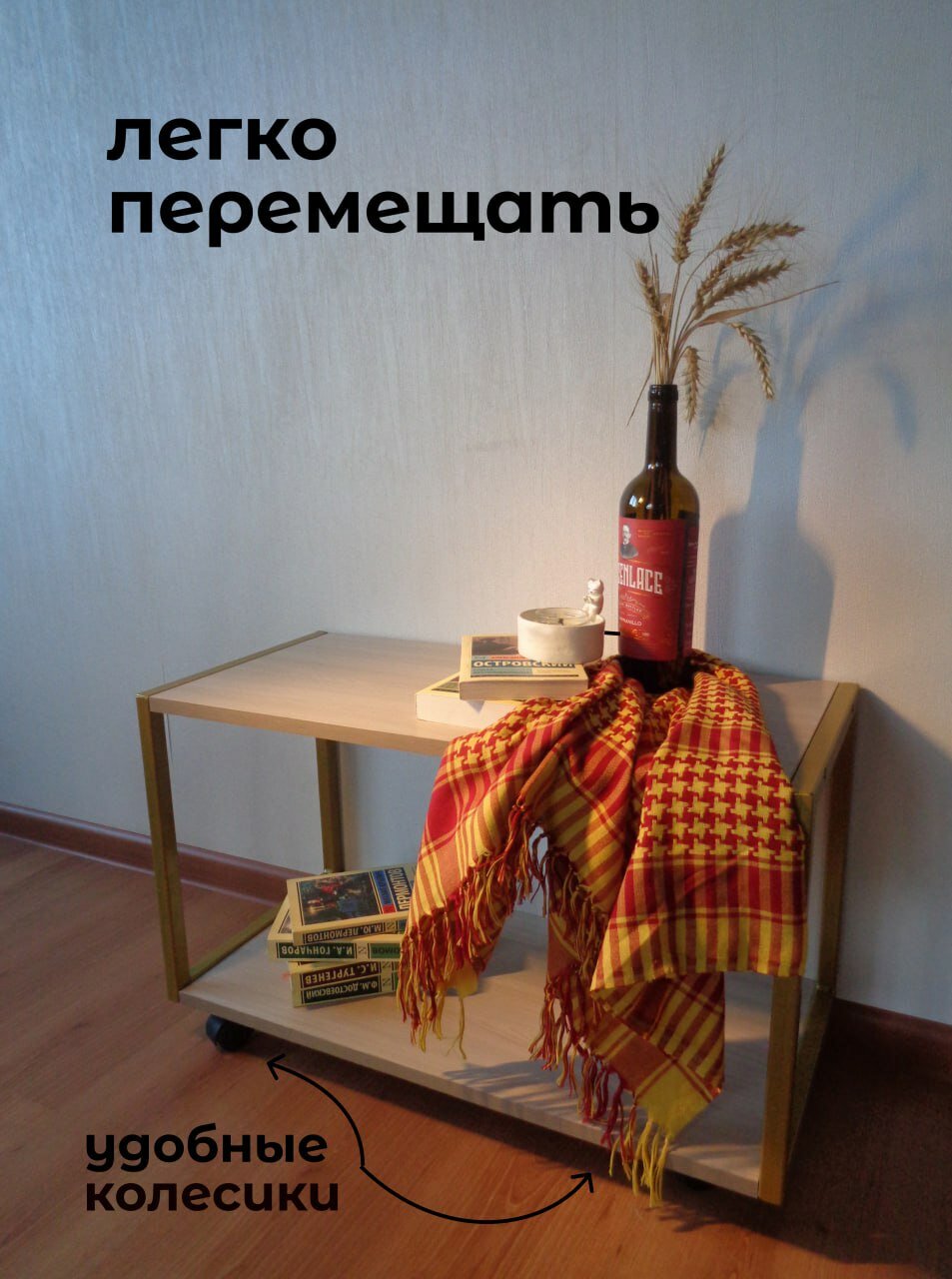 на колесиках, с полкой