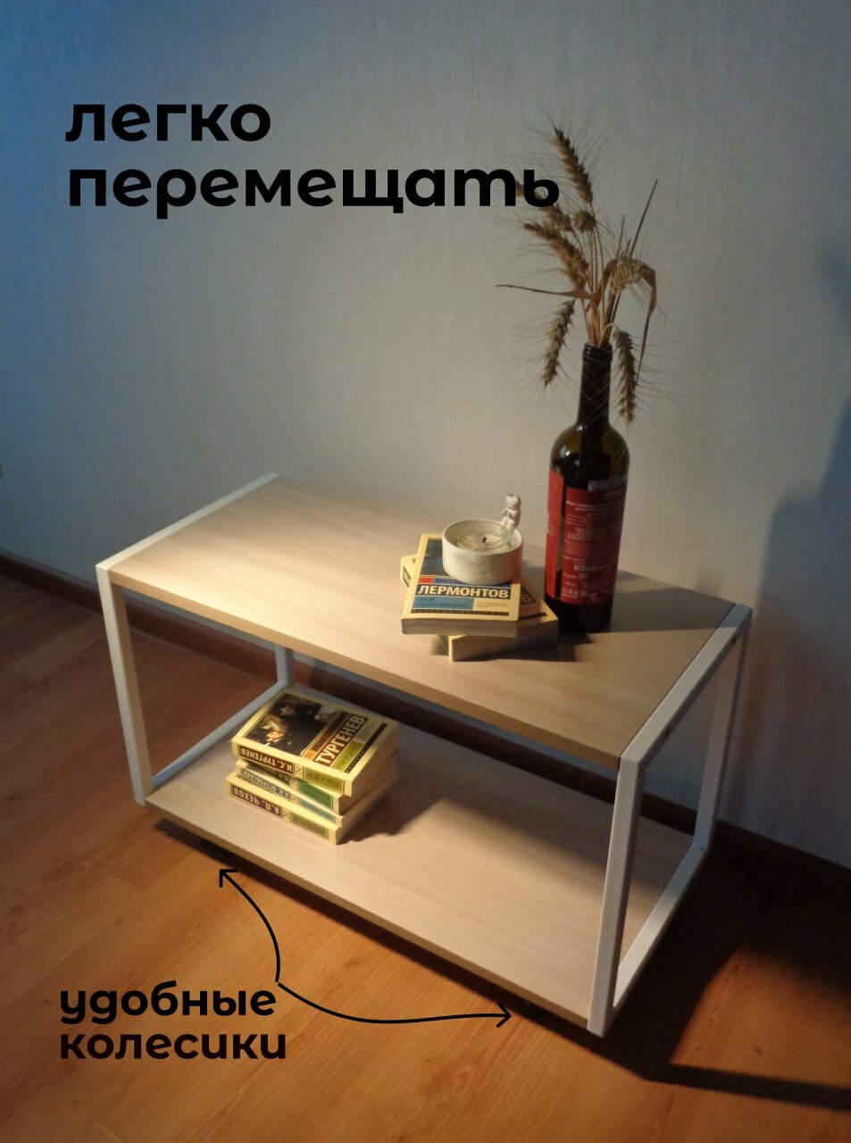 на колесиках, с полкой