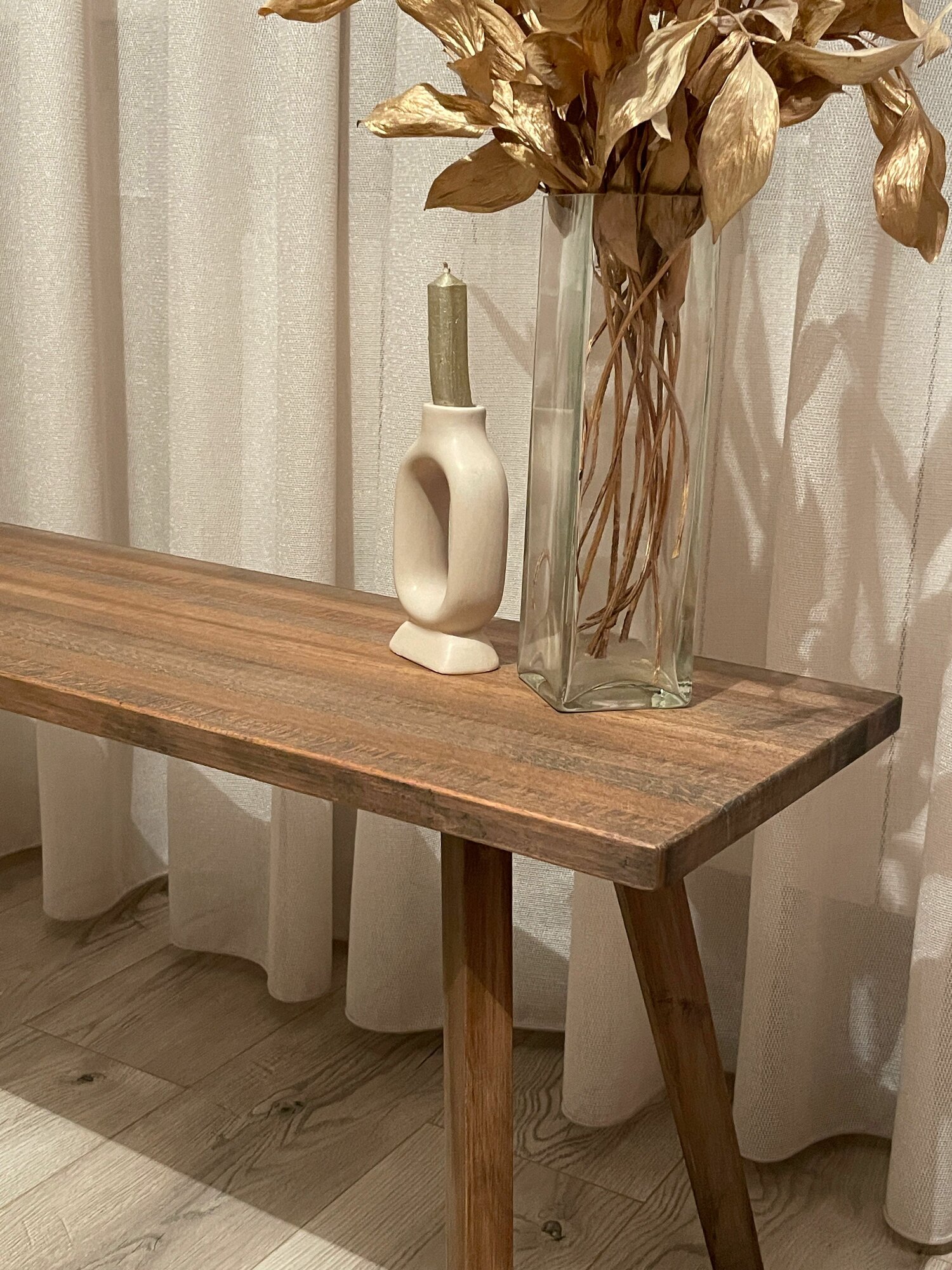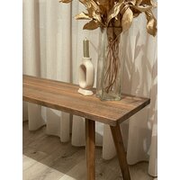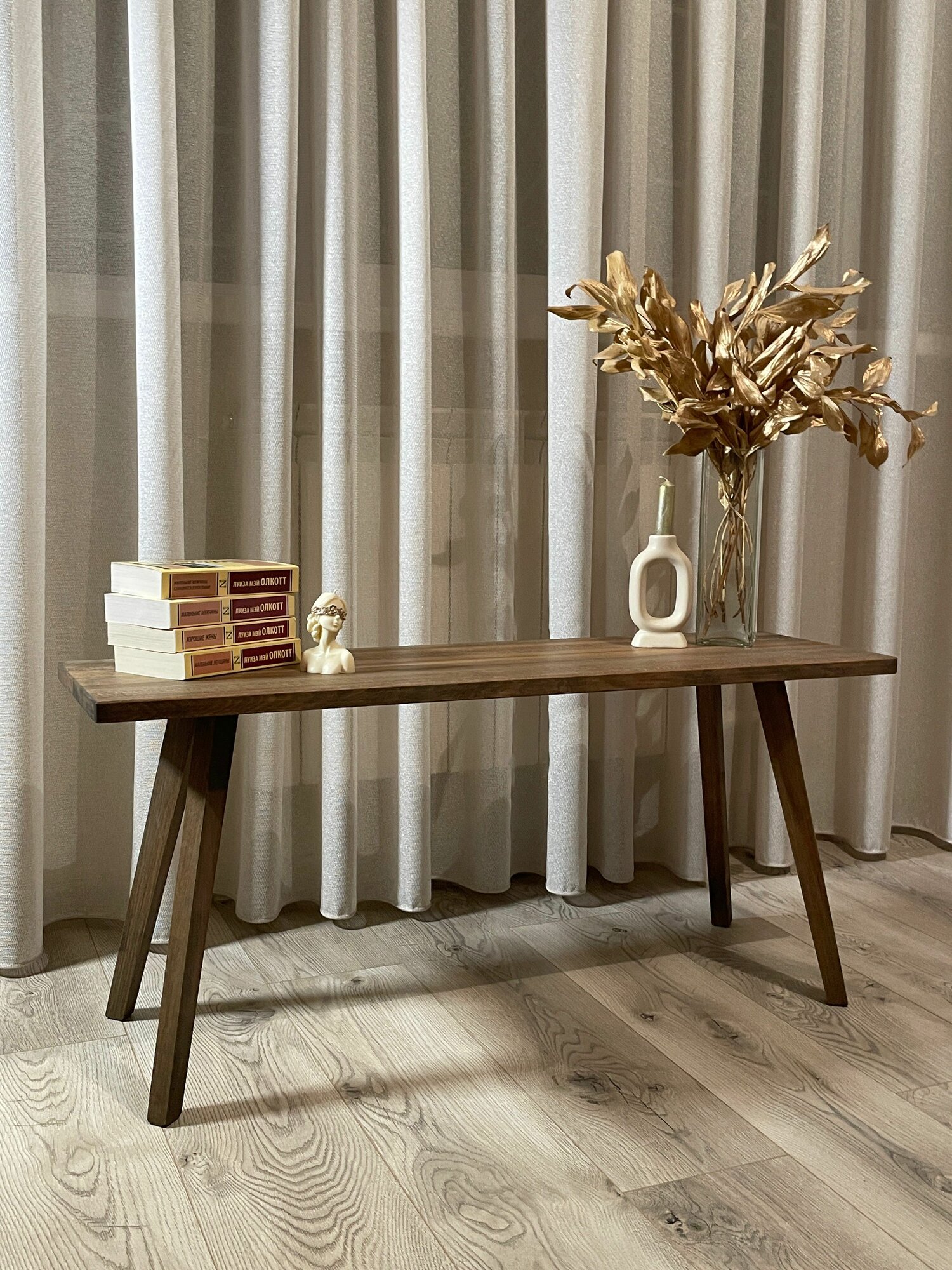 Консоль универсальная из Бука.- Натуральное дерево.- Покрыт эко-маслом с воском.- Деревянные ножки из бруска бука.- Легкий, компактный.- Полностью ручная работа мастерской Adam Studio. Где поставить?- В гостиной- В спальне- В прихожей: в углу комнаты с цветком из сухоцветов.- В коридоре: чтобы кидать на него ключи и мелочь.- В фотостудию, офис, на балкон и куда вам захочется. Дополнительно важно! Текстура дерева на столешнице может отличаться от фотографий. Натуральное дерево уникально по природе. На столешнице могут быть естественные микро трещины. Это НЕ является браком. Все трещины обрабатываются вручную, сглаживаются и не "цепляются.