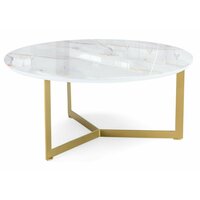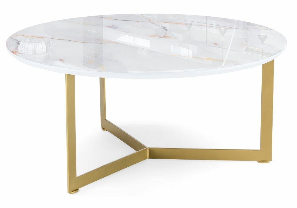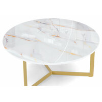 Купить Журнальный стол Роб D-700 woodville белый и золотой, стекло и металл, круглая столешница, оригинальное основание с доставкой по всей России.