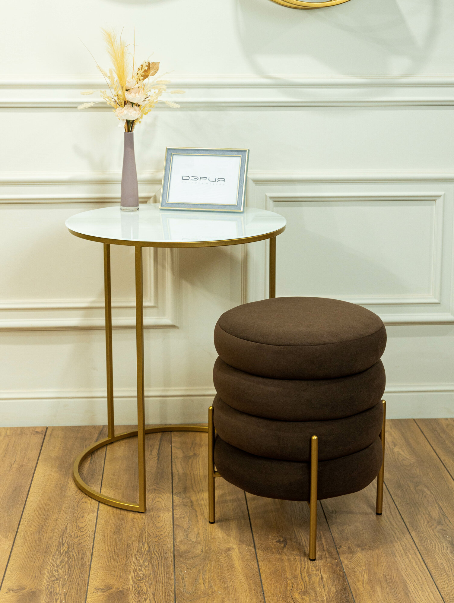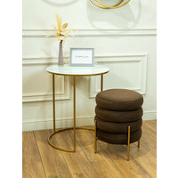 Купить Журнальный стол с пуфом, круглый, ЛДСП, металл, лофт, коричневый, золотистый, белый с доставкой по всей России.