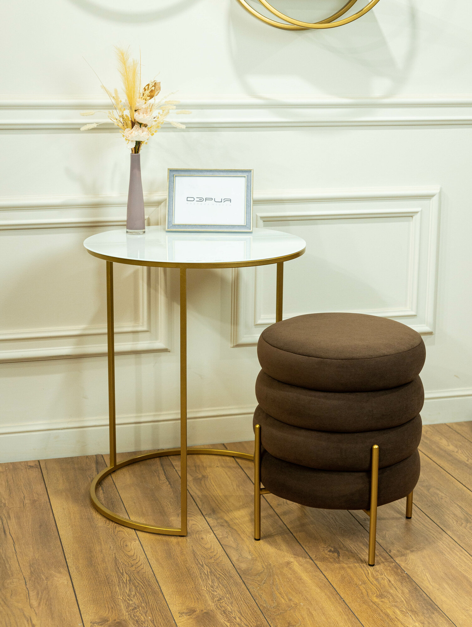 Журнальный стол с пуфом, круглый, ЛДСП, металл, лофт, коричневый, золотистый, белый: сравнение цен, характеристики, фото, актуальное наличие и цены.