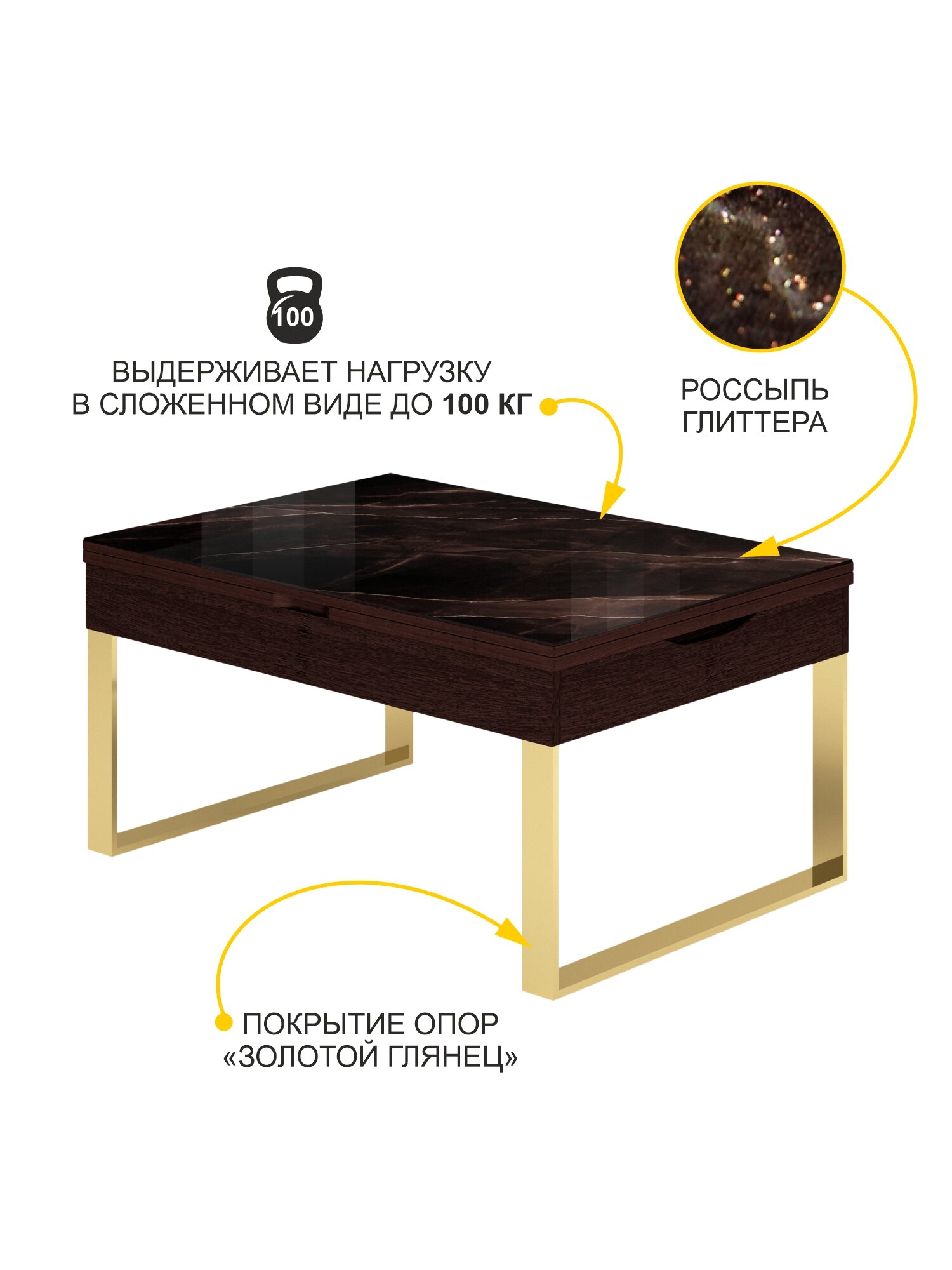 Купить Журнальный стол-трансформер Рим 40 (01) Темный камень/Золото с доставкой по всей России.