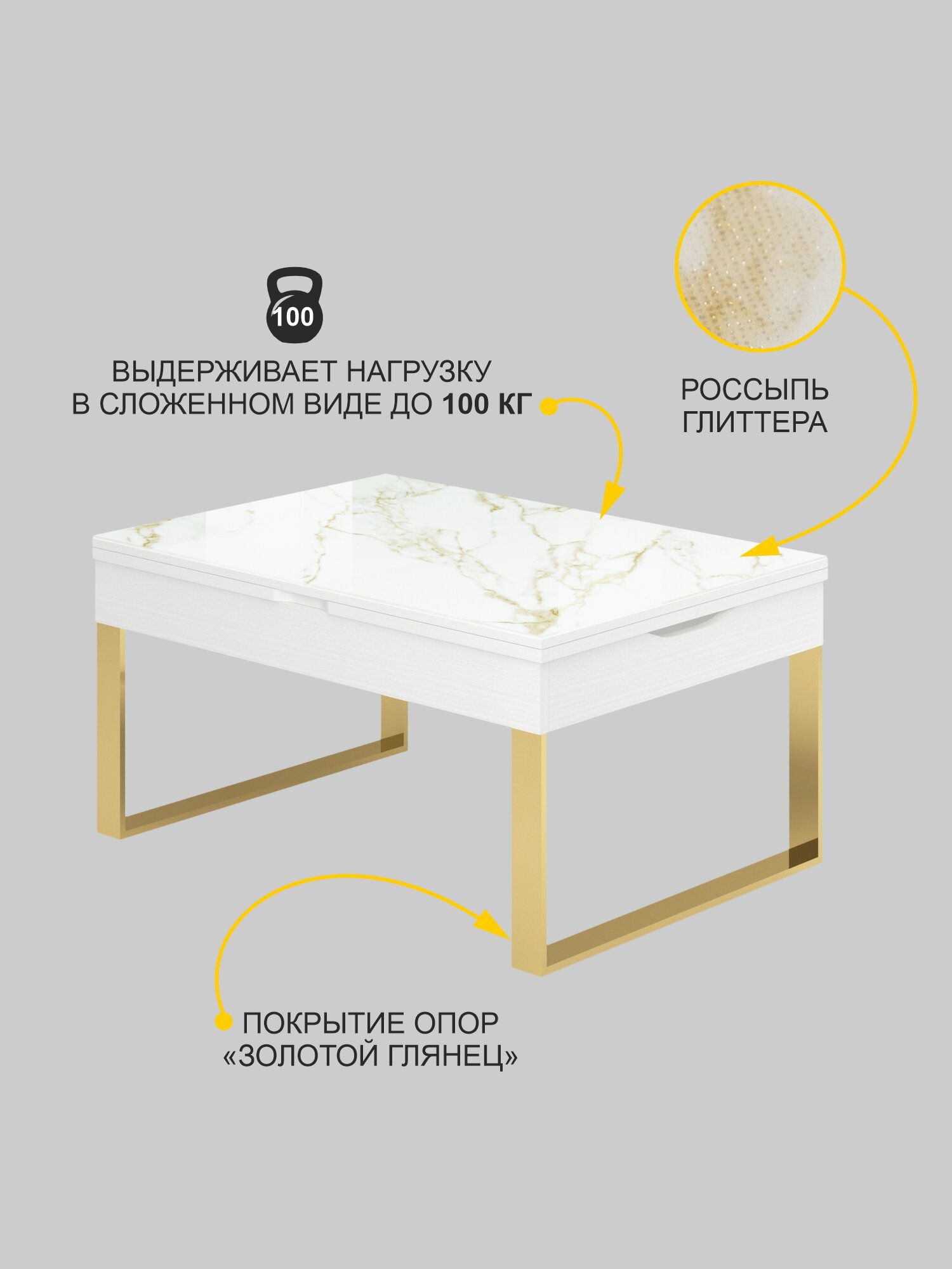 Журнальный стол-трансформер Рим 40 (02) Белый мрамор/Золото: сравнение цен, характеристики, фото, актуальное наличие и цены.