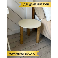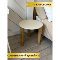 Возможны два варианта сборки ножек прикроватного стола - ножки можно прикрутить ближе к краю столешницы и можно прикрутить ближе к центру. Все необходимые крепежные элементы уже предусмотрены. Столешница выполнена из МДФ, покрыта акриловой краской цвета слоновая кость и лаком. Ножки выполнены из березы и покрыты прозрачным маслом.