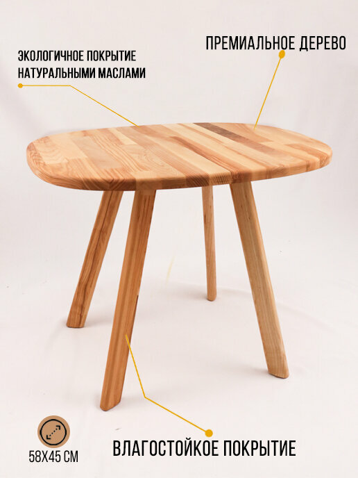 Столик выполнен из массива дерева, что гарантирует его прочность и долговечность. Благодаря влагостойкому покрытию, он не боится влаги и не требует специального ухода.