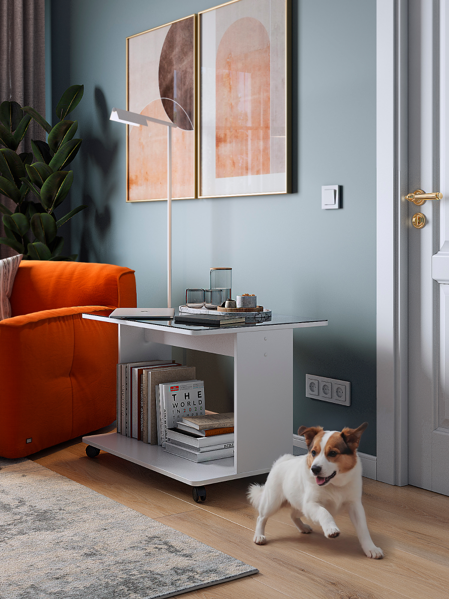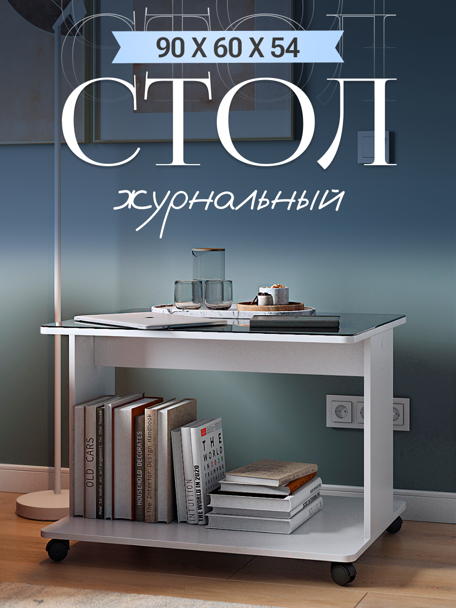 Журнальный столик Акрона «дуэт» белый/стекло черное, прямоугольный столик на колесиках.: сравнение цен, характеристики, фото, актуальное наличие и цены.
