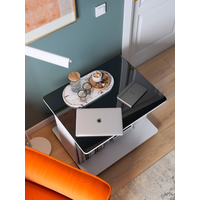 Купить Журнальный столик Акрона «дуэт» белый/стекло черное, прямоугольный столик на колесиках. с доставкой по всей России.