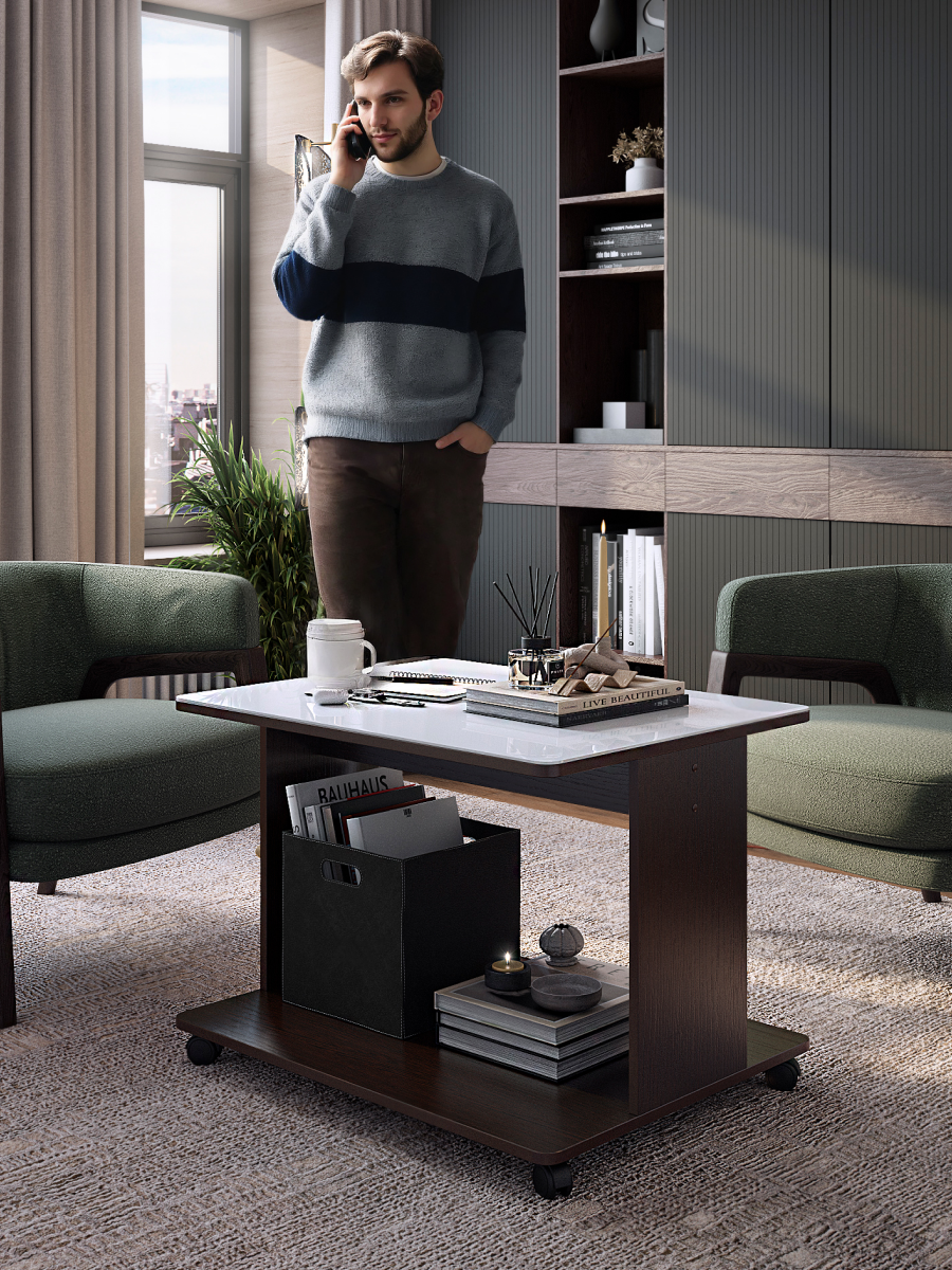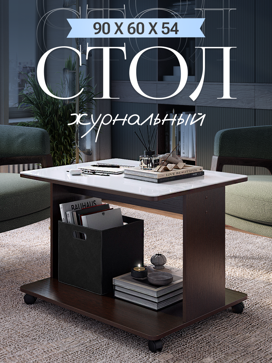 Журнальный столик Акрона «дуэт» венге/стекло белое, прямоугольный столик на колесиках, 80х60х55 см.: сравнение цен, характеристики, фото, актуальное наличие и цены.