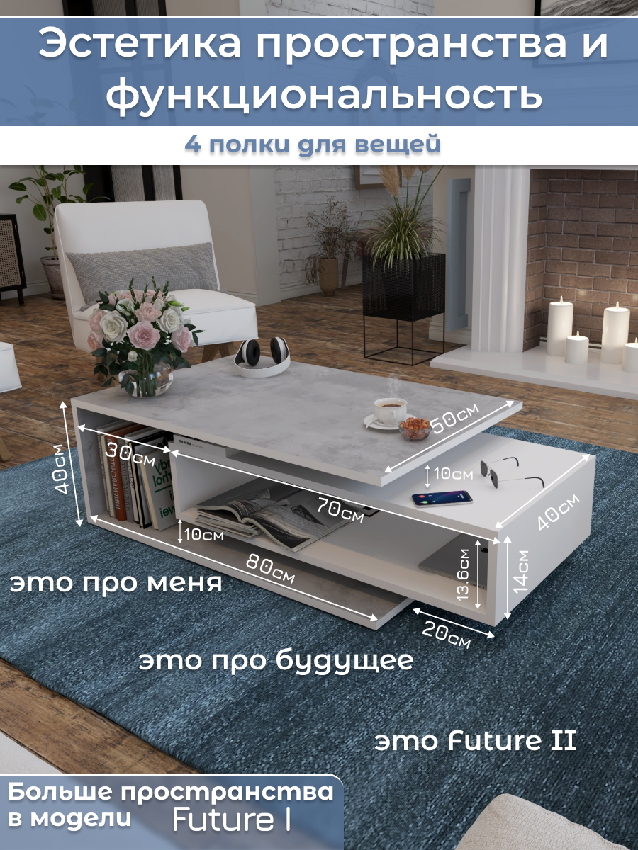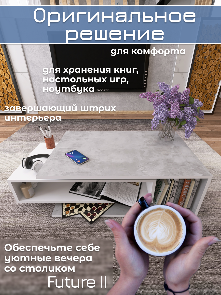 Купить Журнальный столик Аквамикс Future 2 , ЛДСП, минимализм, цвет бетон/белый с доставкой по всей России. Журнальный столик Аквамикс Future 2 , ЛДСП, минимализм, цвет бетон/белый: сравнение цен, характеристики, фото, актуальное наличие и цены.
