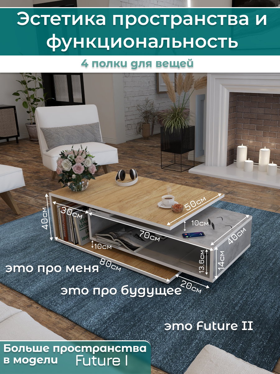 Купить Журнальный столик Аквамикс Future 2 , ЛДСП, минимализм, цвет дуб/бетон с доставкой по всей России. Журнальный столик Аквамикс Future 2 , ЛДСП, минимализм, цвет дуб/бетон: сравнение цен, характеристики, фото, актуальное наличие и цены.