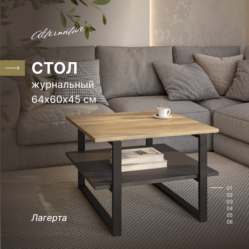 Дизайн журнального стола выполнен на стыке нескольких направлений: лофт, классика и минимализм. Прямолинейность форм и устойчивость конструкции в совокупности с толстой столешницей, которая имитирует слэб натурального древа или камня, подарят своему обладателю комфорт, качество, чувство надежности.