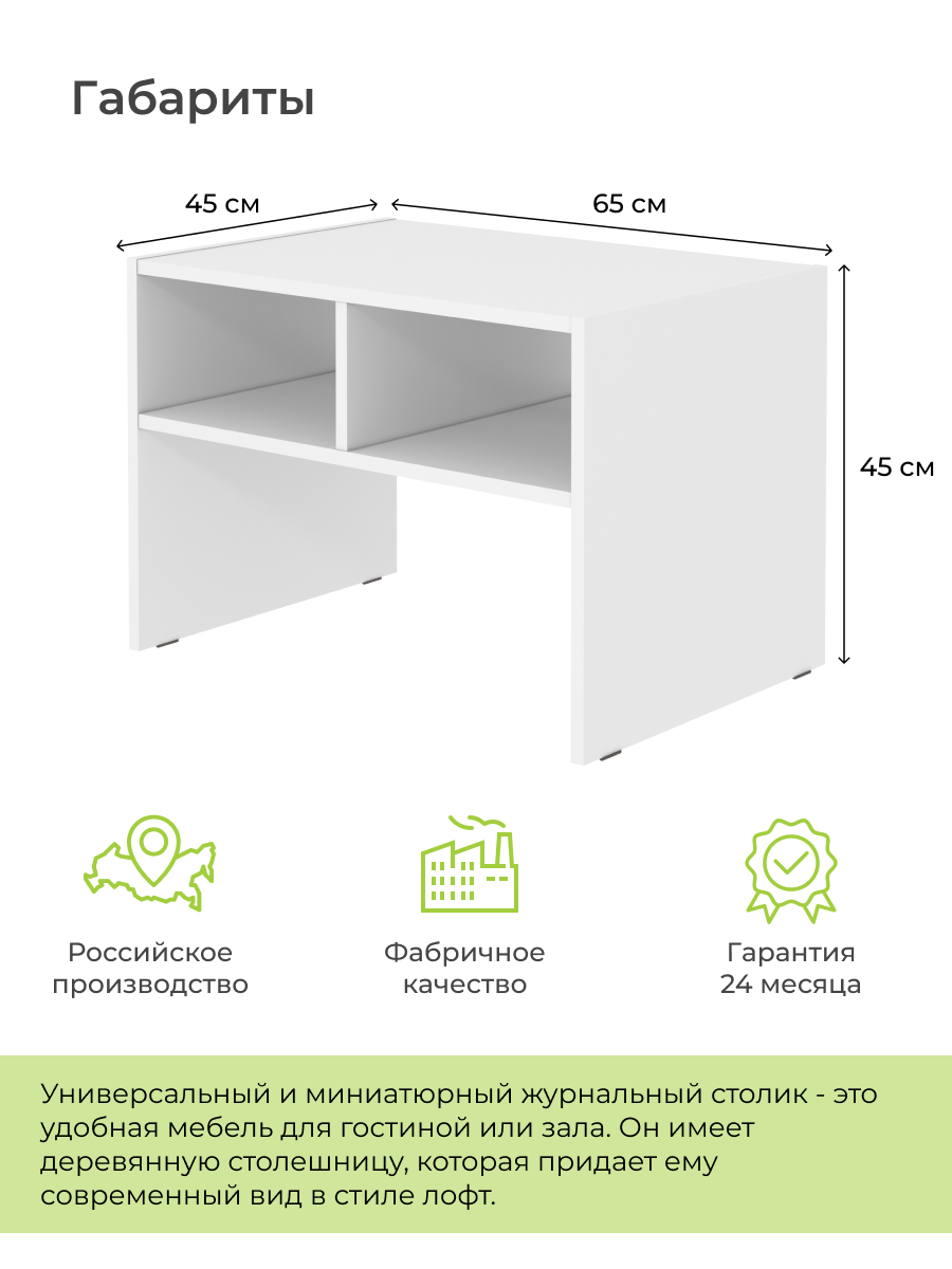 Журнальный столик BONMEBEL СЖ Тип 8, ЛДСП белый, 45х65х45 см, стол