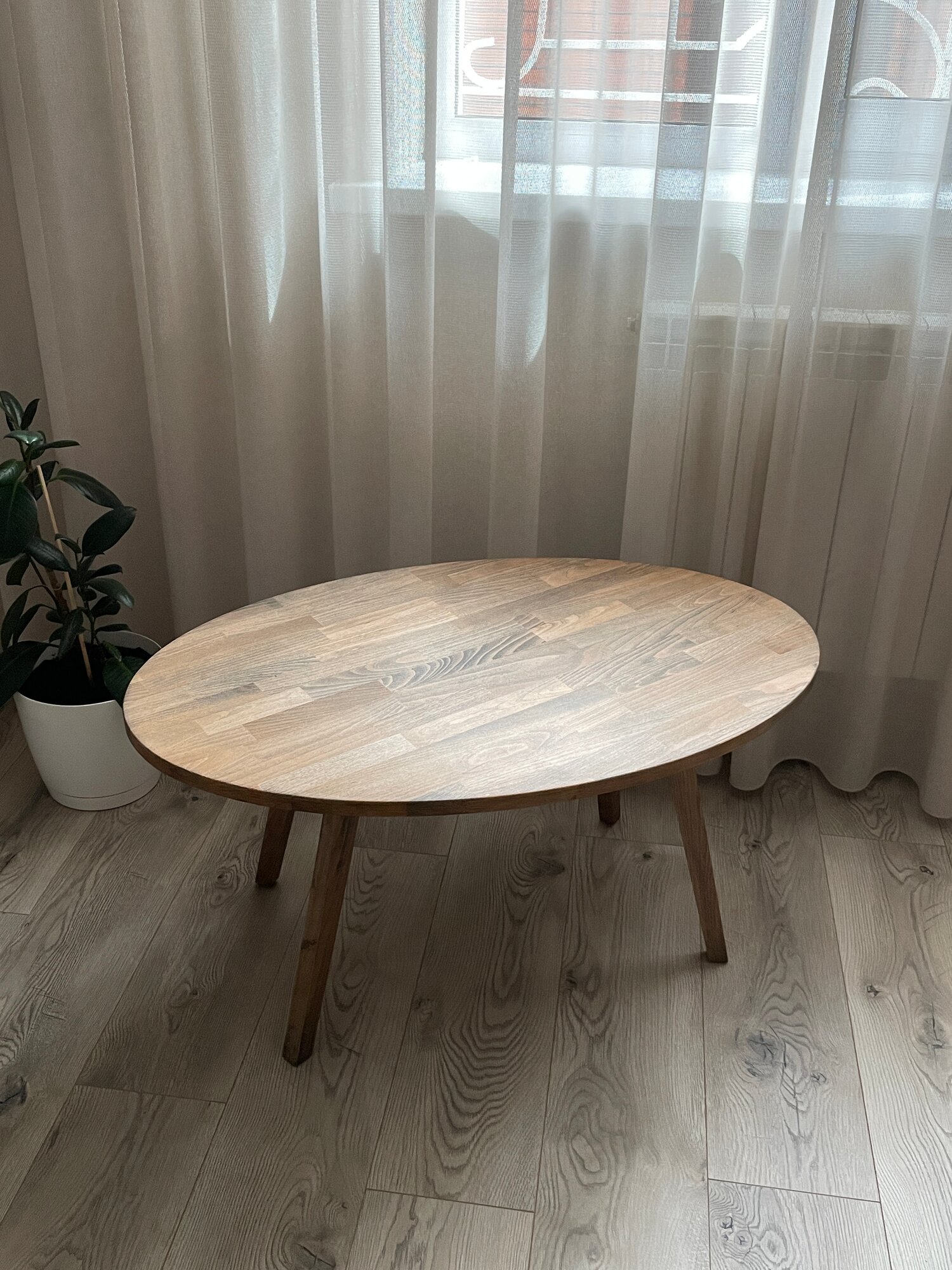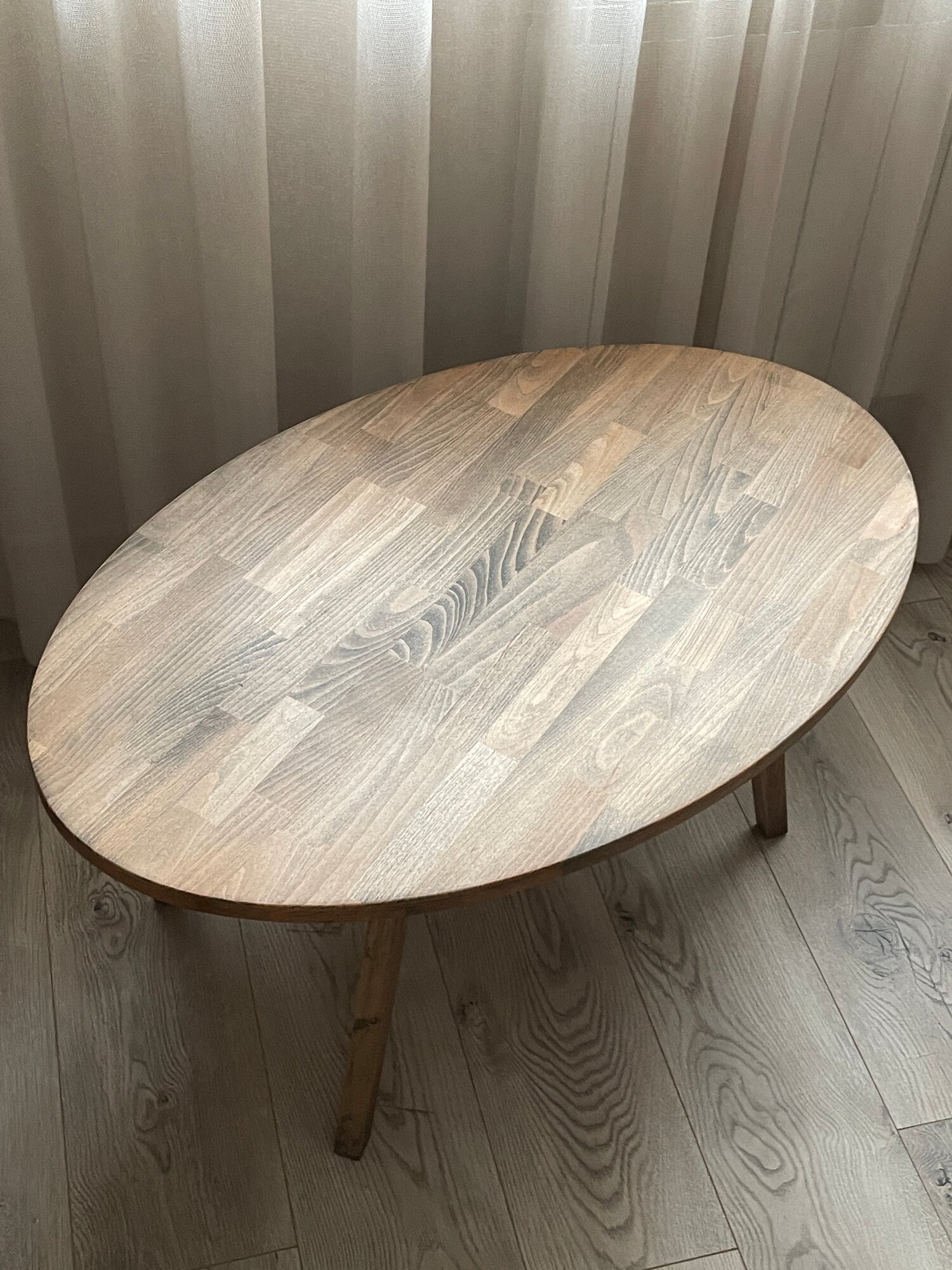 Журнальный столик из массива бука №4 овал темный 90/53/45 см