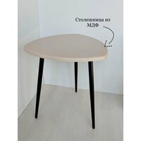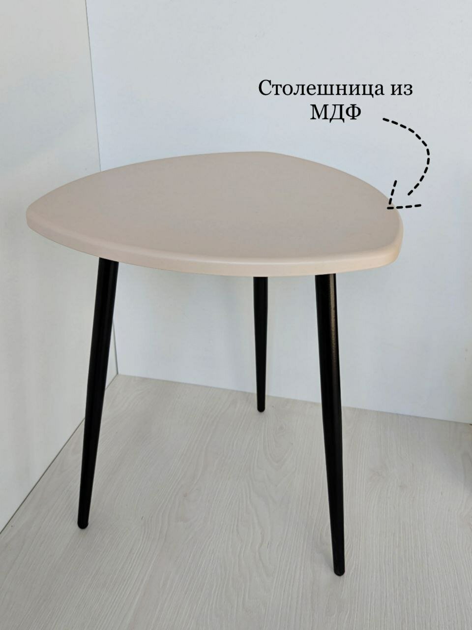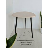 Журнальный столик, кофейный, прикроватный, треугольный. длина сторон 47х47х47см. Цвет: светло-бежевый на черных металлических ножках-конус.: сравнение цен, характеристики, фото, актуальное наличие и цены.