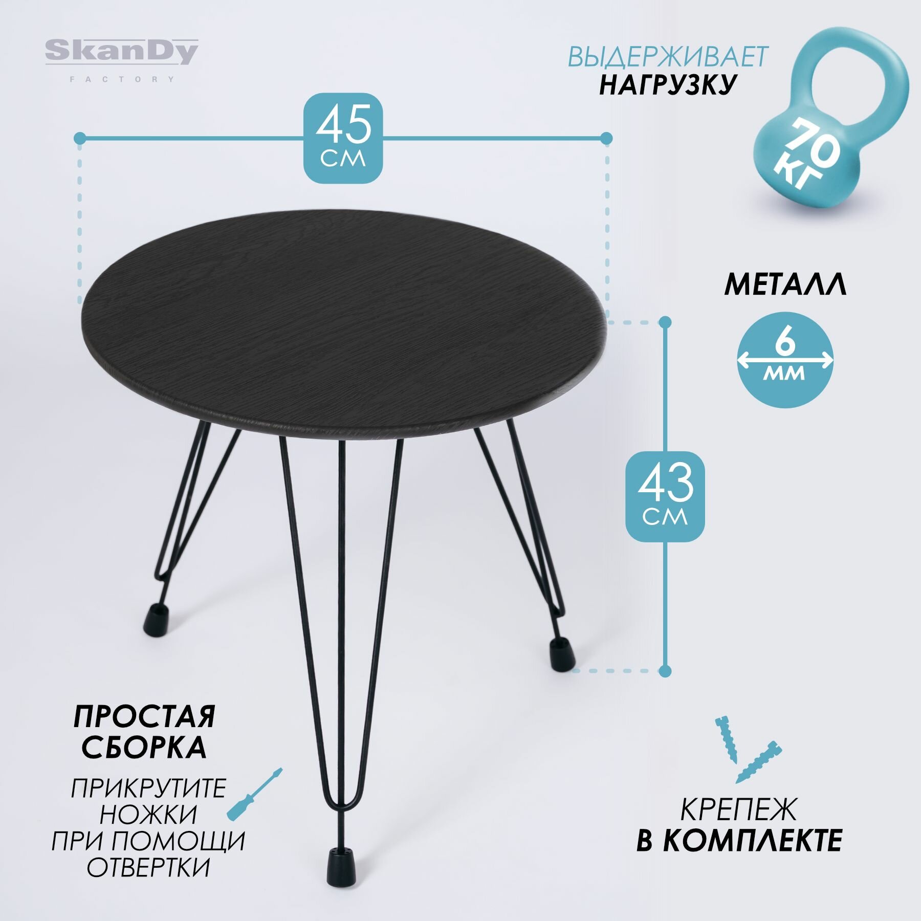 | Дополнительная информация | Сборка легкая – надо только прикрутить ножки по меткам (весь крепеж в комплекте). Высота – 44см. Диаметр столешницы – 45см. В каталоге есть другие столы. |