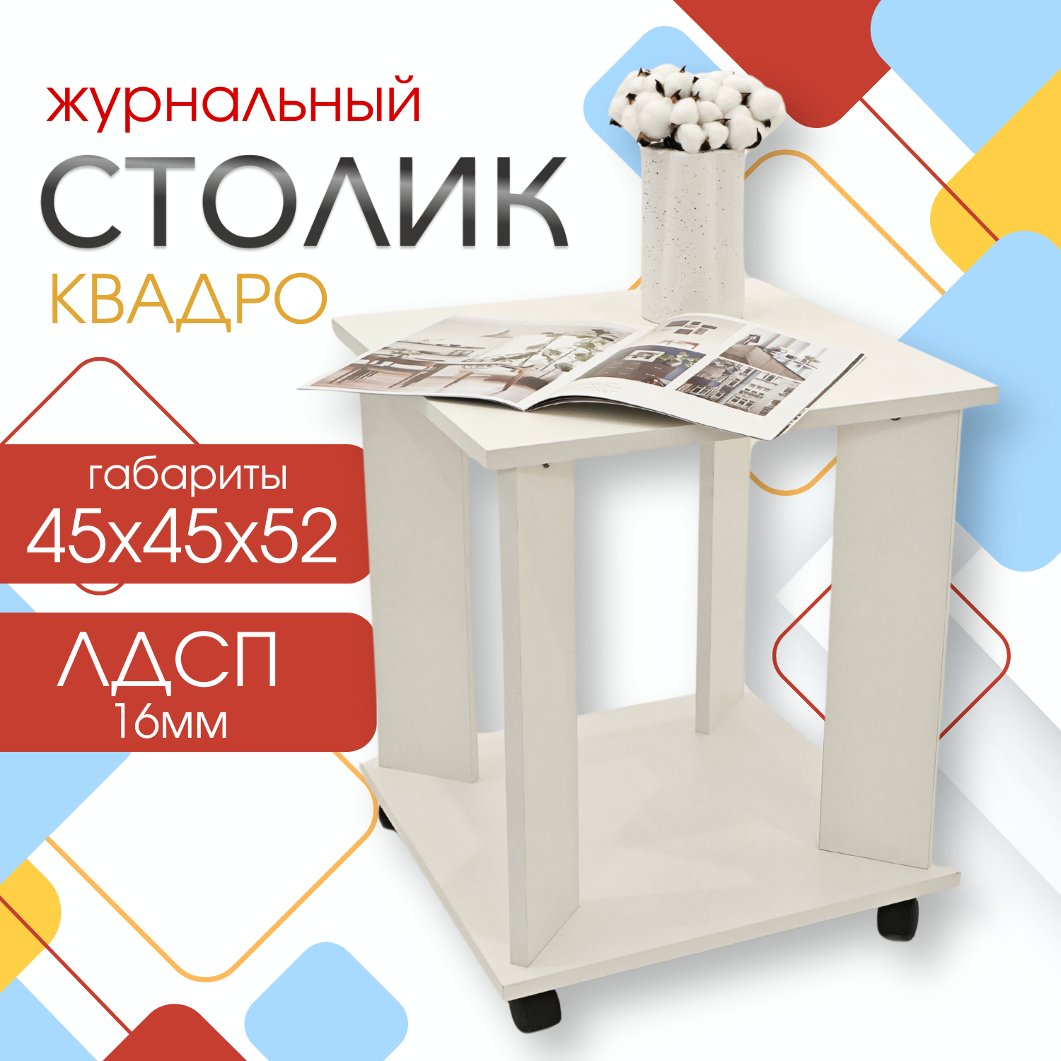 Купить Журнальный столик «Квадро», Кресло Сибири, на колесиках, приставной, 45x45x52см, Белый с доставкой по всей России.