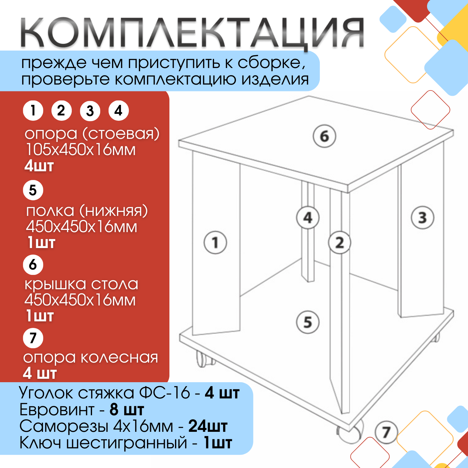 Журнальный столик «Квадро», Кресло Сибири, на колесиках, приставной, 45x45x52см, Белый: сравнение цен, характеристики, фото, актуальное наличие и цены.
