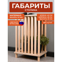 Изготовленный из натуральной березовой фанеры, столик не только прочен и долговечен, но и экологичен. Фанера толщиной 20 мм обеспечивает отличную устойчивость к механическим воздействиям и влаге, что гарантирует длительный срок службы изделия.