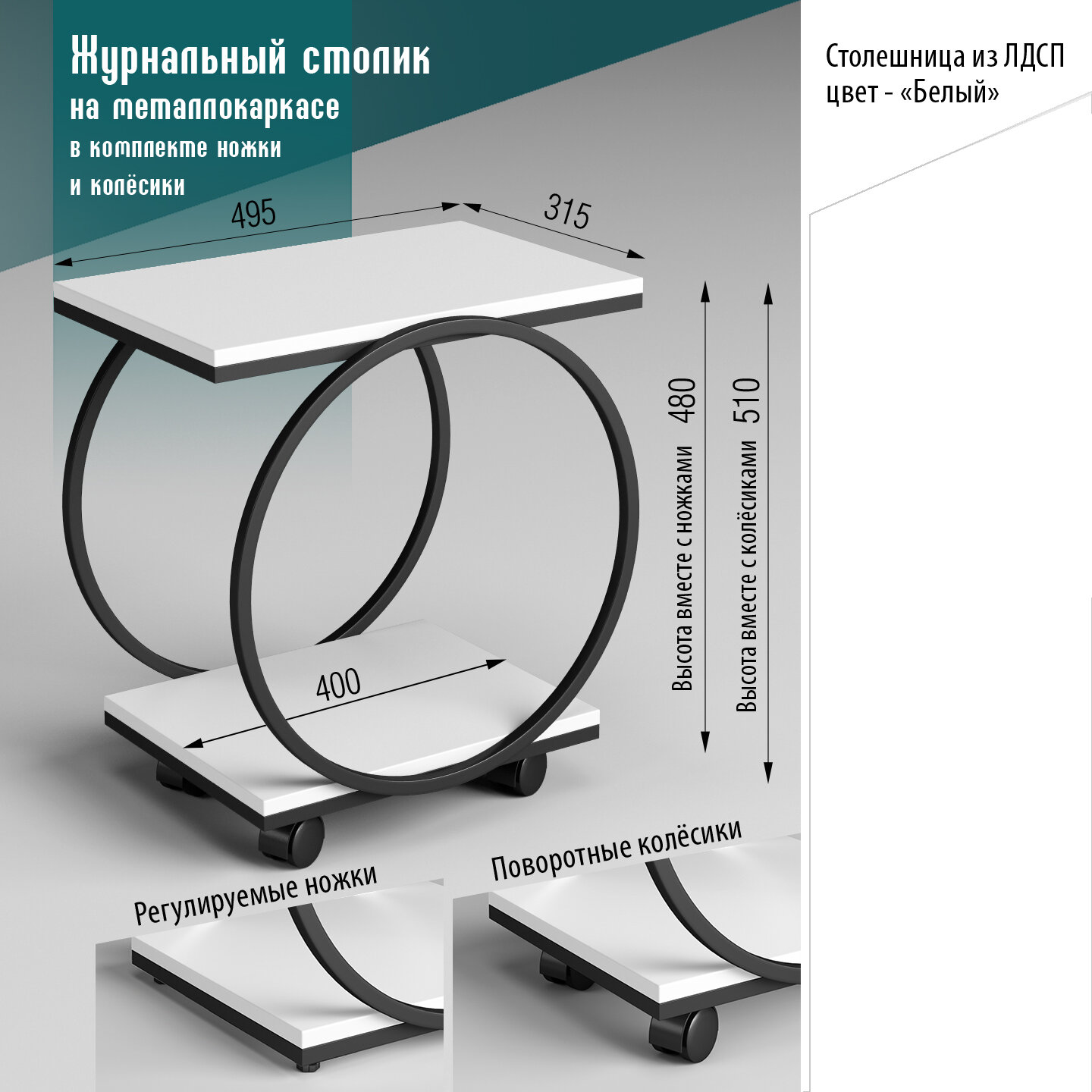 Купить Журнальный столик Лорд на колесах, металлический каркас, аляска/черный с доставкой по всей России. Журнальный столик Лорд на колесах, металлический каркас, аляска/черный: сравнение цен, характеристики, фото, актуальное наличие и цены.