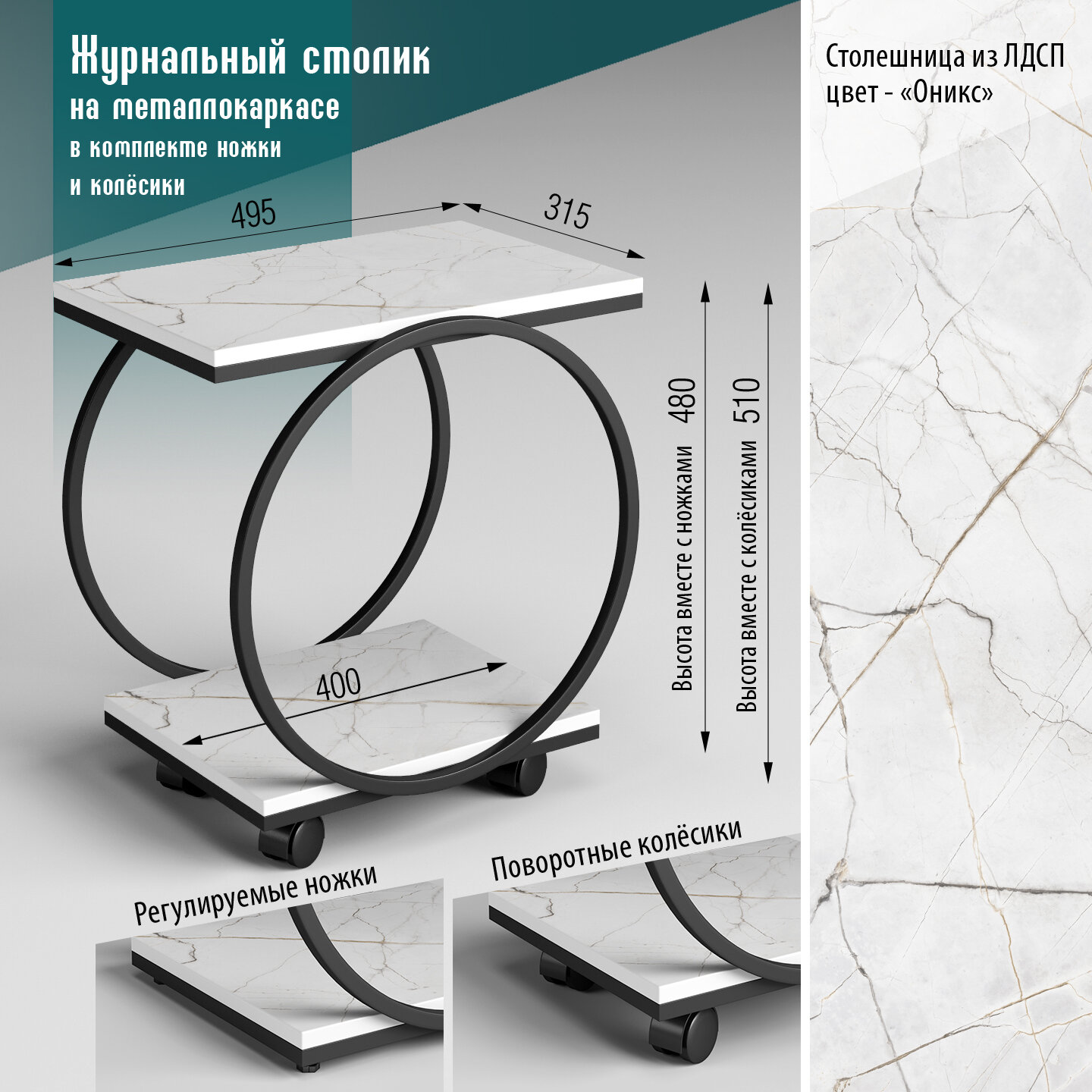 Журнальный столик Лорд на колесах, металлический каркас, белый мрамор/черный: сравнение цен, характеристики, фото, актуальное наличие и цены.