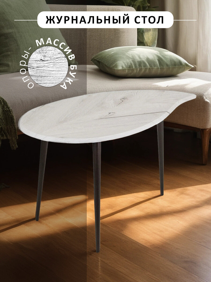 Столешница в виде листочка выполнены из МДФ, обеспечивая долгий срок службы. Устойчивые ножки изготовлены из массива бука, гарантирующего прочность конструкции. Влагостойкое покрытие защитит стол от повреждений и сохранит первозданный вид на протяжении многих лет.