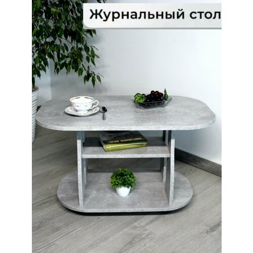 Столик овальный выполнен в светлом сером оттенке «бетон», который гармонично дополнит спальню, гостиную, рабочее место или учебное заведение.