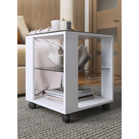 Купить Журнальный столик на колесиках Акрона КУБ белый/стекло черное с доставкой по всей России.