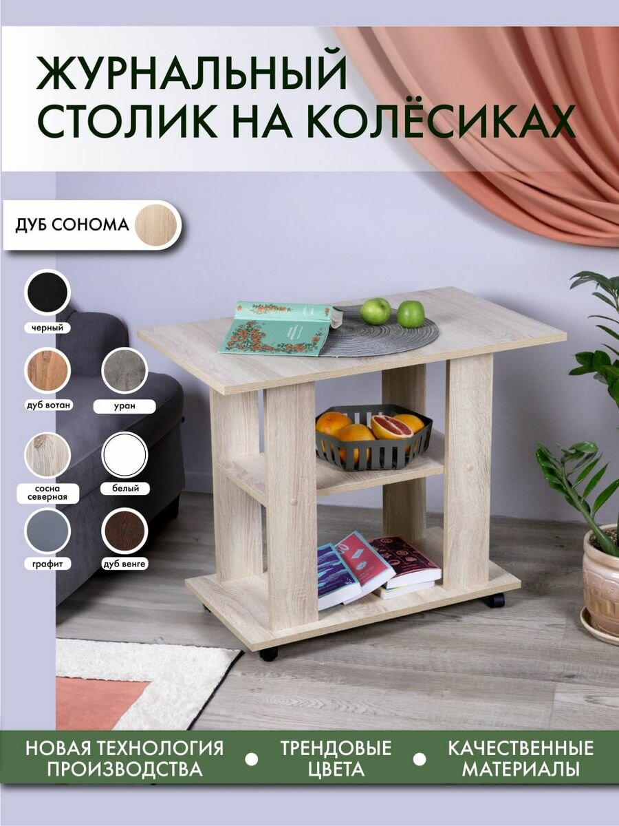 Журнальный столик с колесиками - идеальное решение для гостиной, спальни или кухни. Этот деревянный стол добавляет уют и функциональность любой квартиры. Мебель адаптируется под различные нужды: можно использовать как прикроватный столик или приставной кофейный стол. Вместительный журнальный стол позволяет удобно размещать предметы рядом с диваном.