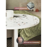 Создайте уютную зону для утреннего завтрака или вечернего чая с помощью двойного белого подкатного столика на одной ножке. Его стеклянная поверхность подчёркивает оригинальный и декоративный внешний вид, перенося атмосферу прованса в домашнюю обстановку.