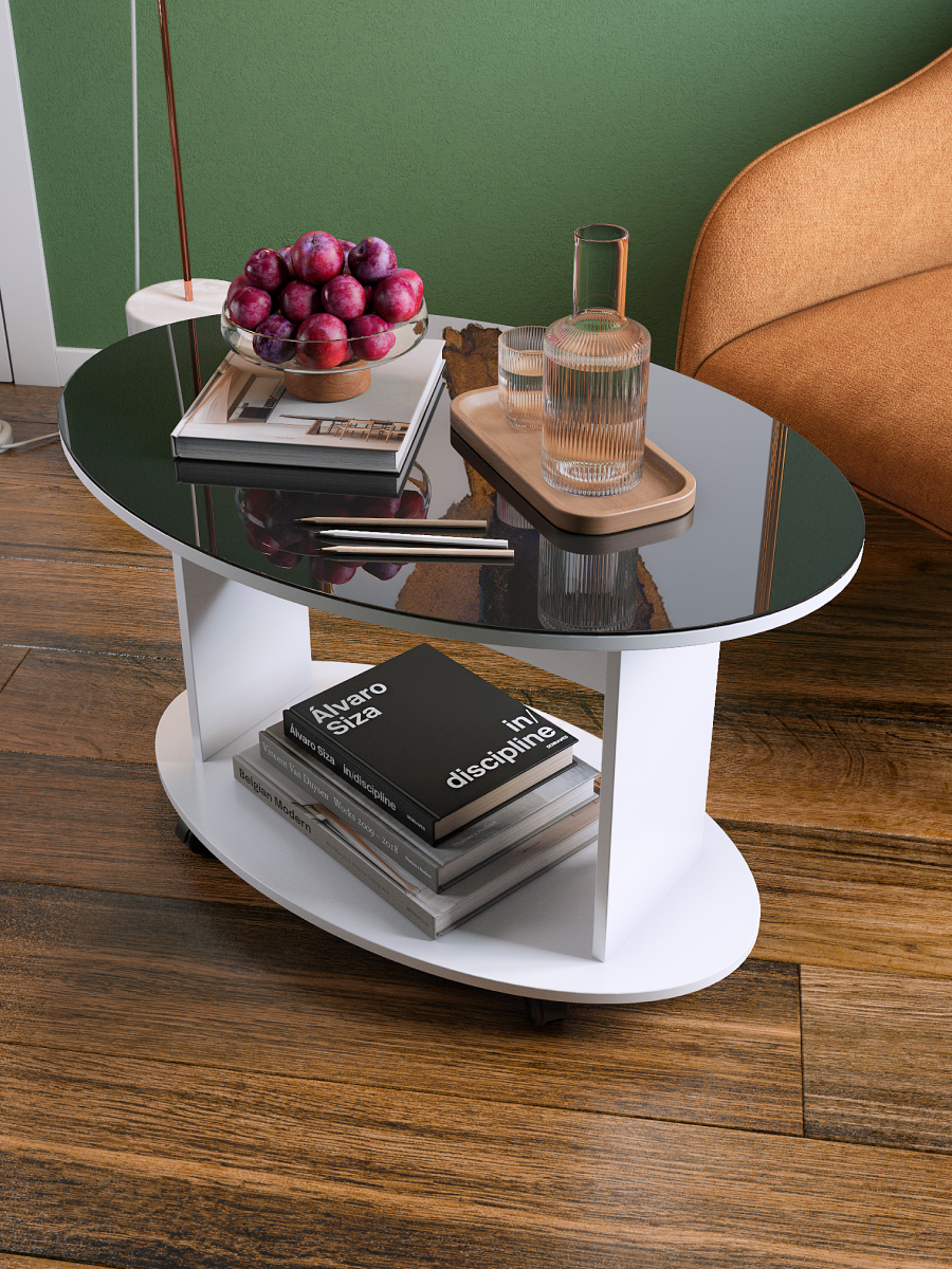 Прочный ЛДСП, словно верный страж, оберегает долговечность "Дуэта-1", а овальные линии столешницы, увенчанные прозрачным стеклом, придают ему воздушную легкость. Компактные размеры позволяют столику органично вписаться в любой уголок вашего дома, будь то гостиная, где он станет центром притяжения для дружеских посиделок, или тихий уголок кабинета, где он будет служить верным помощником в работе.